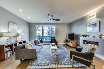 Truly splendid full-floor unit offering four sunny exposures and two private outdoor spaces. Just one block to the Diversey and Wellington EL stations. But, you'd never know thanks to the custom sound-proofing windows installed throughout! The spacious 1,789sf layout offers an enormous flexible living space with a dedicated dining area accommodating a 10-top table for large gatherings. The huge living room boasts a contemporary gas fireplace and offers enough space for two sitting areas. Just outside, enjoy dining or lounging on the big, private terrace. The huge, professional-grade kitchen boasts modern, custom cabinetry, more than ample storage, quartz counters, and Liebherr and Bertazzoni appliances. Palatial primary en suite bedroom features a large walk-in closet, balcony, and space for your king bed, dressers and a sitting area. The bathroom offers a large steam/spa shower, separate oversized tub, and extended double vanity. Two additional bedrooms large enough for king and queen beds. Dedicated garage parking included. Recent all masonry construction (no splitblock). Walk to Southport and Clark shopping and nightlife.